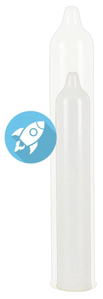 Przezroczysta prezerwatywa o specjalnych wymiarach! Bardzo wąska szerokość prezerwatywy: 49 mm. Długość prezerwatywy: 165 mm. Dla obwodu penisa: 10-10,9 cm, zalecana średnica penisa: 3 cm. Z mokrą powłoką i zbiornikiem.